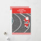 Christmas holiday running track and field greeting cards featuring racing Santa Claus runner and "dashing through the snow" line, designed for track-and-field runners, competitive racers and marathon pacers.