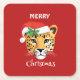 Funny Safari animals Cheetah leopard Santa Xmas Square Paper Coaster