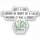 Wishful thinking when it comes to eating healthy and our diet. Just a girl standing in front of a salad wishing it was a doughnut is an accurate feeling and shown in a modern art deco black font with a big green bowl of salad. A funny expression gift for the professional dieter, healthy eater, doughnut lover, salad enthusiast.