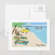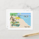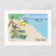Humorous Christmas Postcard. Cartoon of Santa and his reindeer on a sunny tropical beach vacation. Shirtless Santa Clause in red swimming trunks is riding the waves. One reindeer is running with a surfboard. Other reindeer are tanning or reading on the sand. The title is “Yule Tide.” A funny holiday postcard great for personal or business mailings. Visit Jenn's Doodle World for more Xmas cartoon cards and funny gifts.