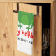 Funny Santa Claus frog cartoon custom Christmas kitchen towel. Cute design for kids and adults. Add your own Holiday greeting and name.