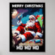 Funny Santa Claus surfing in the summer pop art illustration / Lustiger Weihnachtsmann, der in der Sommer-Pop-Art-Illustration surft / Divertido Papá Noel surfeando en la ilustración del arte pop de verano / Divertente Babbo Natale che naviga nell'illustrazione pop art estiva