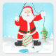Funny Santa Ice Fishing With Polar Bear Square Sticker