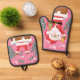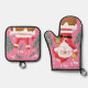 Funny Santa Pink Oven Mitt and Pot Holders Set