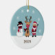 Funny Santa Reindeer Snowman Mask Ceramic Ornament