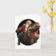 Funny Santa Riding Dinosaur, Vintage Christmas Art Card