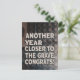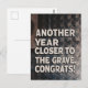 Funny and sarcastic birthday card with text "Another year closer to the grave. Congrats"