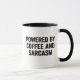 The perfect witty accessory for every caffeine addict! This funny sarcastic coffee mug features the popular quote "Powered by Coffee and Sarcasm" in a bold, eye-catching design. It's the ideal coworker gift for Secret Santa, boss appreciation, or just to upgrade your own work from home desk. Our high-quality ceramic mugs are fully customizable on Zazzle and are microwave and dishwasher safe. Shop this must-have piece of office humor today!