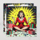 Looking for a funny Christmas card for a friend or family member? Add a little humor into their holiday season with this cute graphics and humor. A funny retro pop art woman sitting in a pile of Christmas gifts, wrapping paper, scissors and bows.