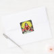 Add a little humor into their holiday season with this cute Christmas sticker with graphics of a funny retro pop art woman sitting in a pile of Christmas gifts, wrapping paper, scissors and bows.