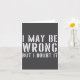 Funny Sarcastic Mens I May Be Wrong But I Doubt It Card