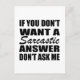 If you like funny sarcastic quotes or great humourous designs then this original slogan " If you don't want a sarcastic answer, don't ask me " is for you. It's a great gift for your family, friends, or yourself! This design is ideal for anyone who loves sarcasm and humour. If you like this funny quote, check out more similar artworks in the Omitay store. Stay safe and thank you for supporting a local artist.