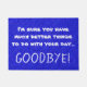 Are looking for a 'sarcastic' doormat today? How about this blue and white sarcastic quote print doormat that says: 'I'm sure you have much better things to do with your day... GOODBYE!' Perfect for unwanted guests or pesky solicitors!