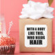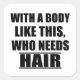 If you like funny sarcastic quotes or great humourous designs, this original slogan " With a body like this, who needs hair? " is for you. It's a great gift for your family, friends, or yourself! This design is ideal for anyone who loves sarcasm and humour. If you like this funny quote, check out more similar artworks in the Omitay store. Stay safe and thank you for supporting a local artist.