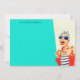 It's always nice to have personalised note cards on hand for sending out short notes of thanks, to keep in touch, or send expressions to friends and acquaintances. This unique and outrageously funny note card design features a kitschy sassy woman in striped sunglasses and hair turban with a polka dot bag and striped towel, rocking her attitude. The humour is carried out in the whimsical type face that you can personalise with your name or any other desired text. The retro colour scheme of aqua, beige, navy and red adds to the fun of this design. The back of the card is intentionally blank so you can continue writing your notes on the reverse side. This item makes a wonderful and witty gift for your girlfriends or women family members. Sold in multiples of 10 and you can choose a variety of paper types.