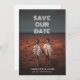 A funny unique tale on a save the date card with a wild animal couple theme, with a unique decorative type heading, and your dates. Other text on the back. Simply replace this placeholder photo with your own humourous animal couple photo. Replace this sample placeholder with your own unique photo.