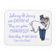 Unique huge humorous keepsake save-the-date magnet is extra large...just like your love! Offbeat, less formal, funny wedding save date invitation magnet features cute, slightly stunned, bewildered cartoon bride carried in arms of groom who wears tuxedo and top hat, eager but slightly befuddled. Is this you two? This size is for extra special invitees. Make a great wedding souvenir! Make your invitees smile w/ this fun invite and they'll be even more likely to accept your invitation, won't they?