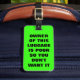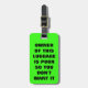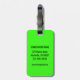 Funny Saying Neon Lime Green Luggage Bag Tag is a fun and humourous way to mark you suitcase! Trendy neon colour on both sides and front of tag has funny phrase "Owner of this luggage is poor so you don't want it." Back of tag has easy template to follow which includes your name, street address, city, state, zip code, phone number and email.