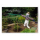 Funny smiling scarecrow in an allotment. Happy Birthday text can be edited to suit any occasion or name.