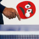 Fun red and scared face novelty ping pong paddle from Ricaso