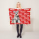 Your dog deserves a blanket of their own, especially with their name and breed on it. Fun throw to warm the season by the fireside or tossed over the sofa. An Schnauzer in Santa hat, with the dog's name patterned on a red background. TIP: Choose Personalize to change the background color to one which matches your decor if you like.