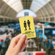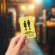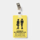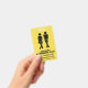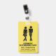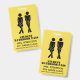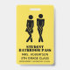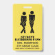 Humourous school teacher's student bathroom hall pass badge done in yellow with black stencil like figures of a urgent need boy and girl. Personalise the text fields to read what you want.