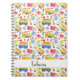 Funny custom name notebook with watercolor yellow school bus in pattern. Cheerful and perfect notebook personalised name for students or teachers going back to school.
