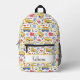 Funny custom name Backpack with watercolor yellow school bus in pattern. Cheerful and perfect Backpack personalised name for students or teachers going back to school.