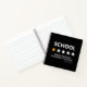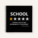 Funny students notebook/sketchbook featuring the word "SCHOOL", with 1 out of 5 stars, a bad review saying "boring, would not recommend it to anyone", and their name.