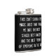 The flask itself is fine. It’s a cheap flask, obviously bought in bulk, however am prepared to overlook that. Given that it is a personalized item, I would have liked to have seen gift boxing instead of the generic packaging. Terrible printing, and/or quality. It’s a cheap, tacky vinyl. It is not cut straight and is also applied in a way that it is overhanging the bottom, causing the glue to catch on items and it will eventually roll and tear, damaging the wrap.
