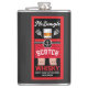 The flask itself is fine. It’s a cheap flask, obviously bought in bulk, however am prepared to overlook that. Given that it is a personalized item, I would have liked to have seen gift boxing instead of the generic packaging. Terrible printing, and/or quality. It’s a cheap, tacky vinyl. It is not cut straight and is also applied in a way that it is overhanging the bottom, causing the glue to catch on items and it will eventually roll and tear, damaging the wrap.