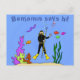 This cartoon scuba diver surrounded by cute, happy fish will be a great greeting idea for any child keen on sea creatures.