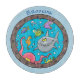 These funny sea creatures are peering through the porthole of a shipwreck. Includes our cartoon octopus, shark, fish and some other delightful characters. Perfect for the fish lover or diver! Bright and fun!