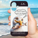 Phone case featuring cute illustration featuring a funny seagull with fish. Great to bring a smile and enjoy communication.