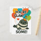 Cute seal postcard featuring adorable cartoon seal with party hat and colourful balloons. Front displays "YOU'RE CLAW-SOME!" pun perfect for sending birthday wishes, vacation greetings, or just because messages. Great for animal lovers and pun enthusiasts to share smiles through the mail. generativecontent.