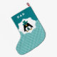 Funny Senior Penguin design Christmas Stocking for Dad with personalized text. Matching stocking with different penguin family members, greeting cards, favors and gifts available in the Christmas & New Year Category of our store.
