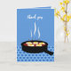 This humourous greeting card has an image of a skillet with shakshuka, a dish of eggs in spicy tomato sauce. It says Thank You.