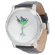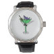 Fun blue shark is swimming in green martini glass with olive original art design.