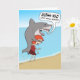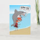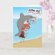 Here's a funny cartoon birthday card featuring a shark who can't hide its excitement over beach season and the arrival of swimmers.
