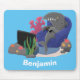 This funny design features a shark watching TV. A fishing show perhaps? Drawn in fun cartoon illustration style.