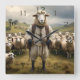 Funny Sheep Shepard With His Flock Of Sheep, Square Wall Clock