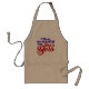 Cute, heavy duty apron with wide front pocket. Light to wear and easy slip on and off. Shorter length perfect for my 5 ft frame. I love it! Wording and print looks good with clear borders. Stitching is good, nicely finished.