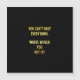 Yellow text on a black background humorously questions the practicality of having everything. It prompts the reader to consider the limits of space and possession.