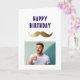 Funny Simple Moustache Happy Birthday Photo Card. Simple card with golden moustache and Happy birthday. Add your photo and message inside. A sweet and fun birthday photo card for a man.