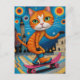 Funny Skateboarding Surreal Ginger Cat Postcard