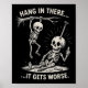 Funny Skeleton Hang In There Dark Humour Halloween Poster