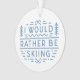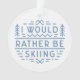 Ski lovers funny quotes I would rather be skiing retro mountains aesthetic nordic skiers girl white and blue Christmas tree ornament holidays home decor.