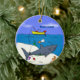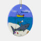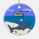 Funny sleeping shark and fishing cartoon ceramic ornament