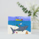 Funny sleeping shark and fishing cartoon postcard