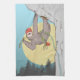A FUNNY CARTOON ILLUSTRATION OF A CUTE ANIMAL ROCK CLIMBING. A SLOTH LEAD CLIMBING, WITH A HARNESS AND QUICKDRAWS.